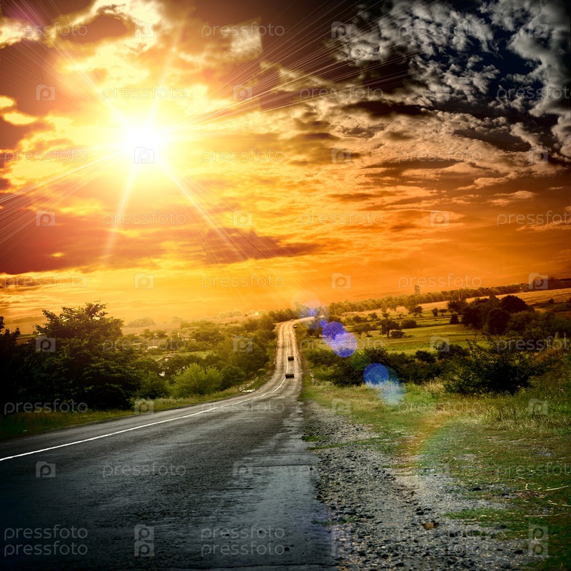 Асфальтовая дорога и красный восход