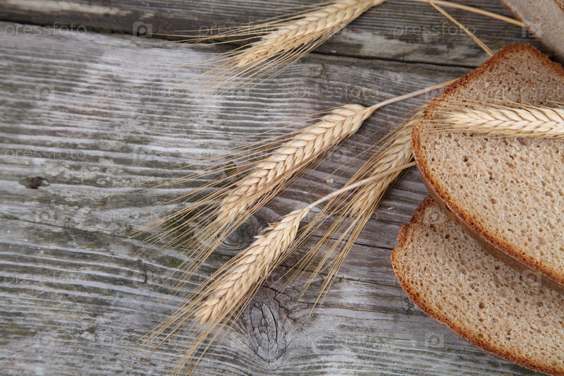 Хлеб и колосья на деревянной доске