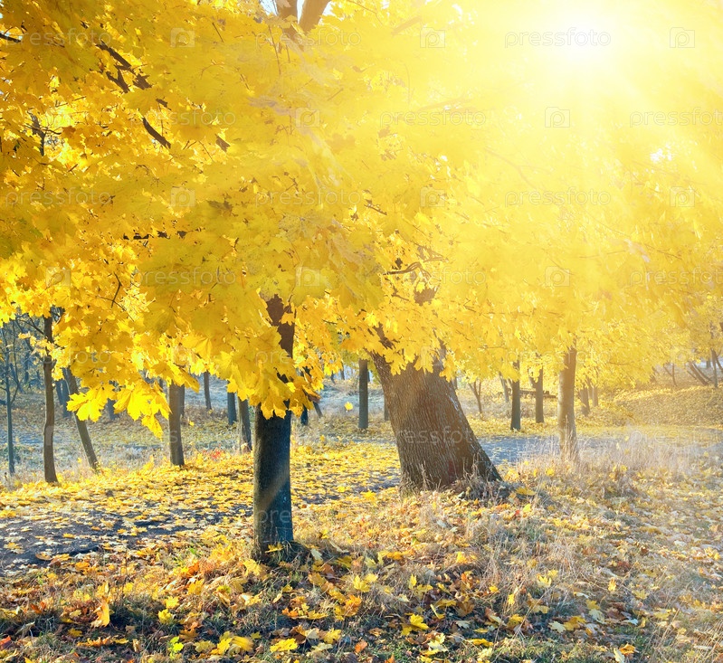 Осенние кленовые деревья в парке