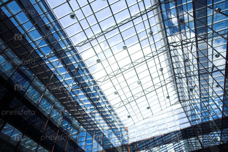 Синий защитный потолок внутри бизнес-центра