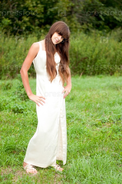 Девушка в белом платье на природе