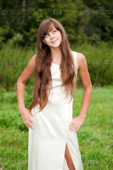 Девушка в белом платье на природе