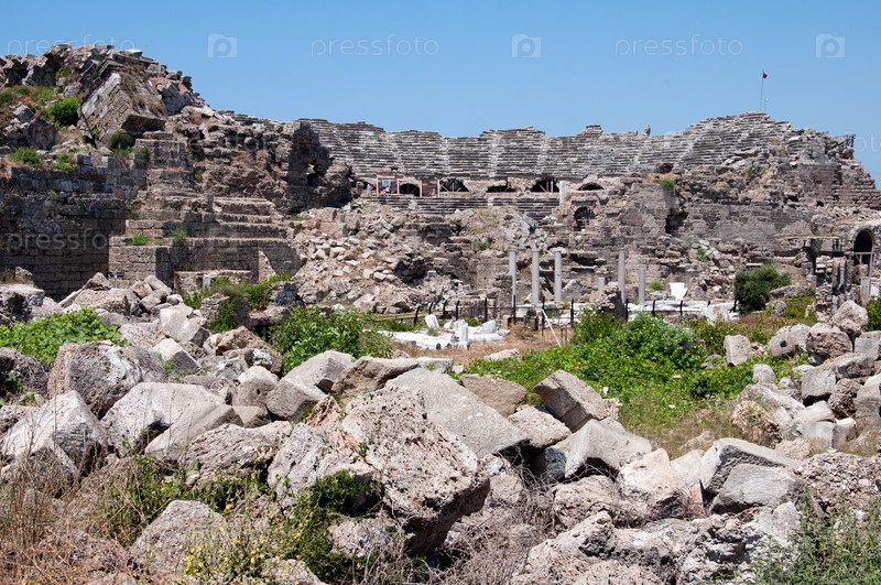 Руины древнего амфитеатра в Сиде, Турция