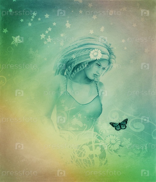 Цветочная абстракция с девушкой