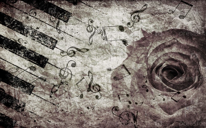 Винтажный фон с розой и музыкальными нотами