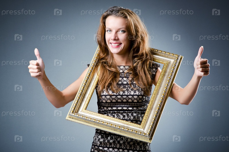 Молодая женщина с фоторамкой