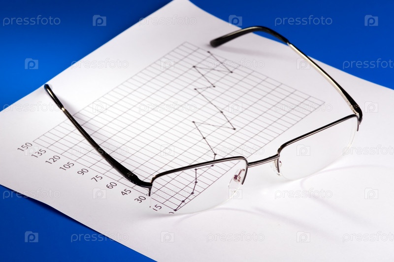 Очки и лист с графиком на голубом фоне