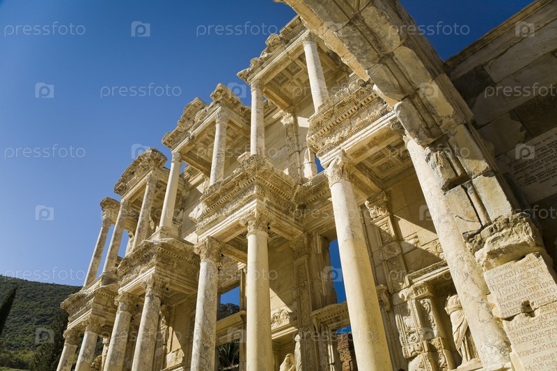 Колонны библиотеки Цельсия, древнего Эфеса в Турции
