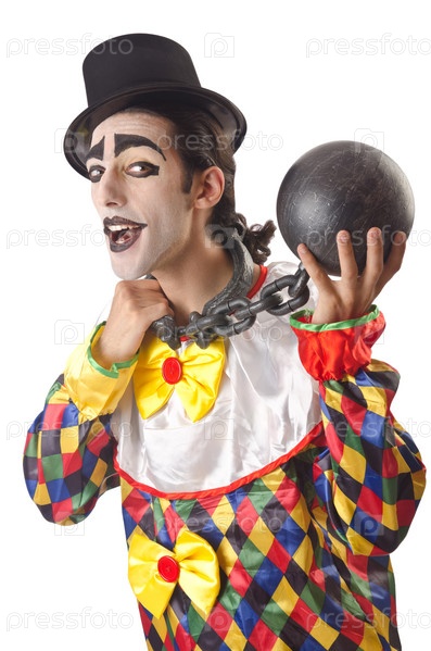 Печальный клоун на белом фоне