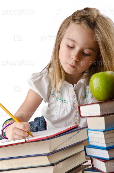 Маленькая девочка пишет карандашом