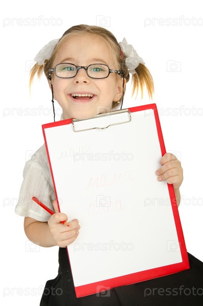 Маленькая девочка с карандашом и планшетом
