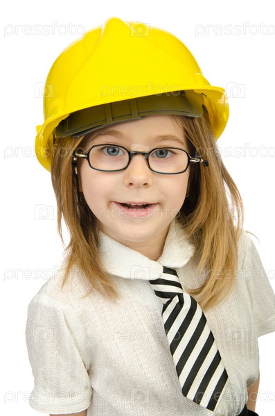 Милая девочка со шлемом на белом фоне