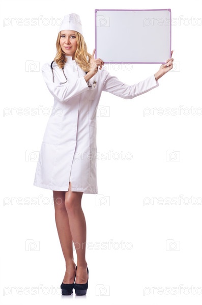 Женщина-врач с пустым баннером