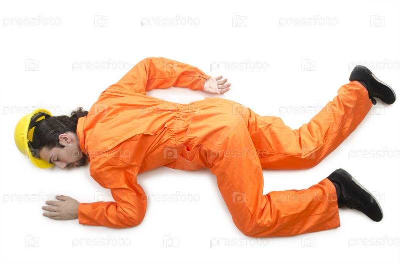 Раненый рабочий на белом фоне