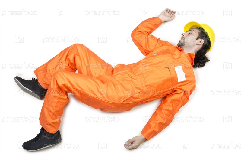 Раненый рабочий на белом фоне