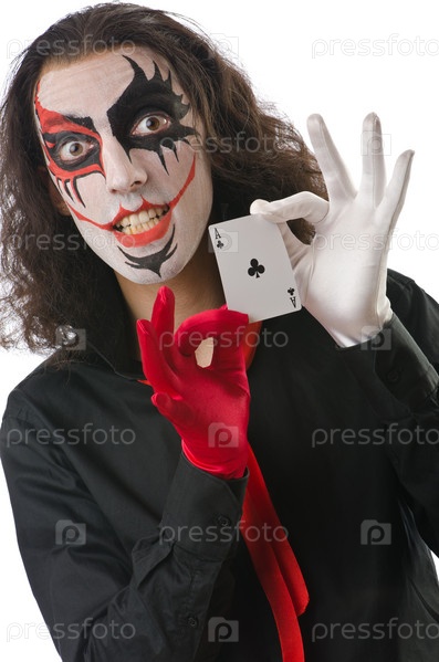 Джокер с картами, изолированный на белом