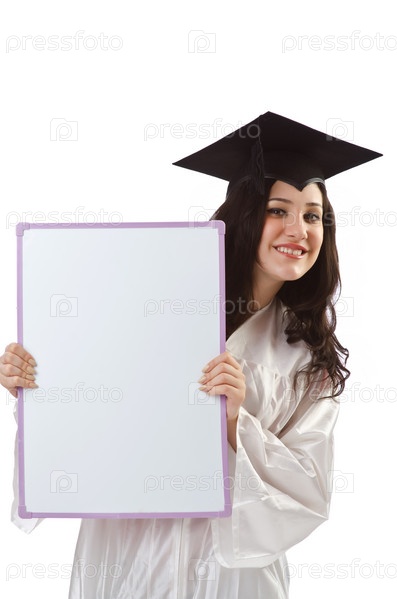 Молодой студент с пустым баннером