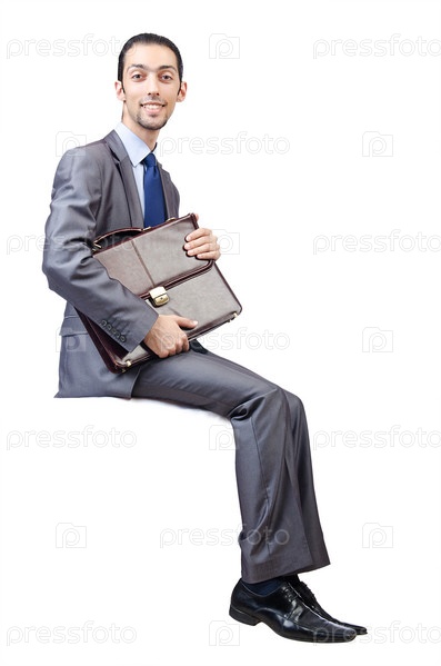 Человек с портфелем на белом фоне