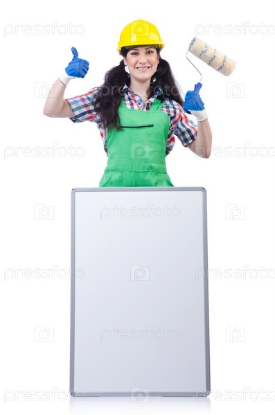 Женщина-строитель с пустой доской