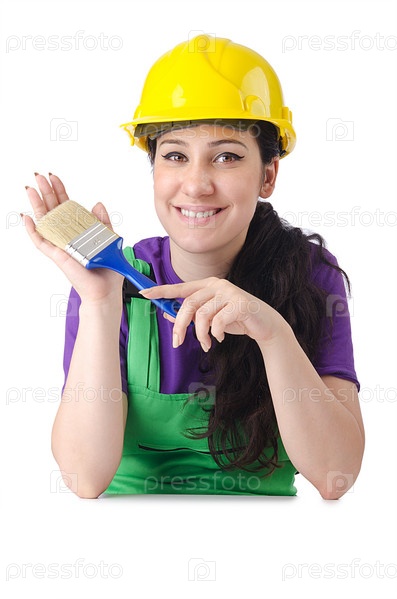 Женщина-маляр, изолированная на белом фоне
