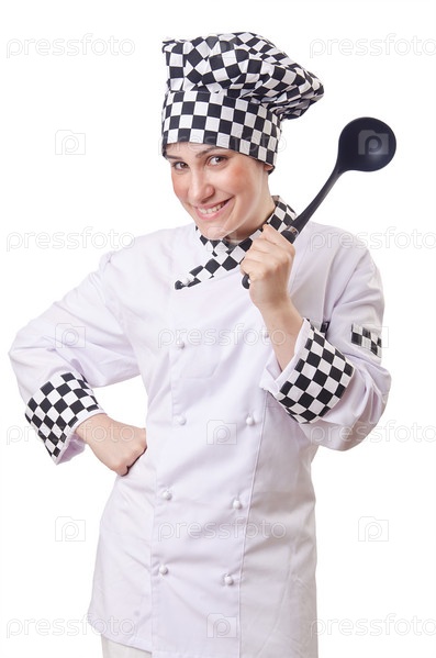 Женщина-повар с черпаком+ на белом фоне