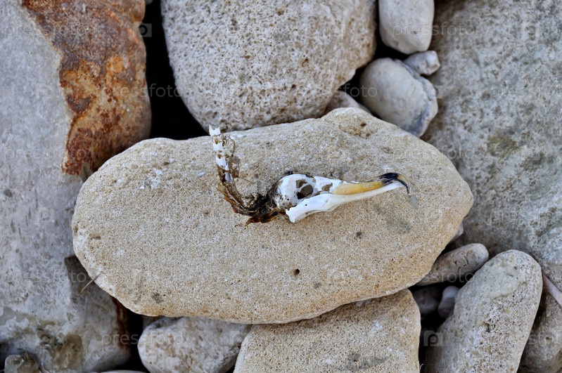 Череп морской птицы на каменном пляже
