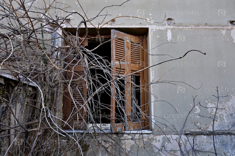 Облезлая стена и разбитое окно
