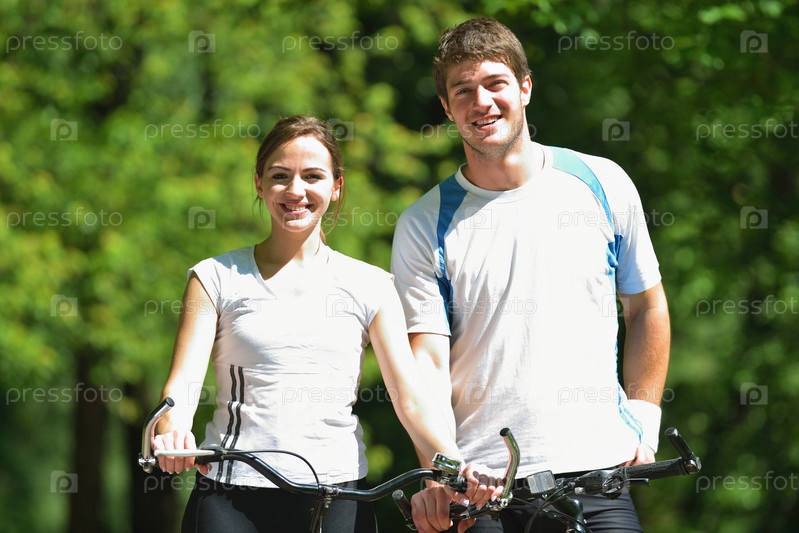 Счастливая пара велосипедов на открытом воздухе