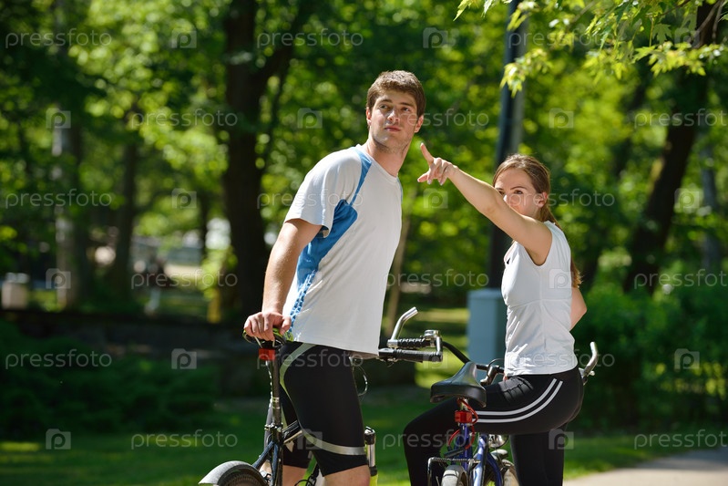Счастливая пара велосипедов на открытом воздухе