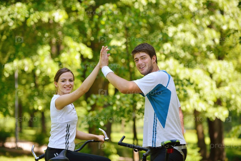 Счастливая пара велосипедов на открытом воздухе