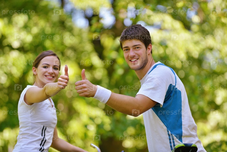 Счастливая пара велосипедов на открытом воздухе
