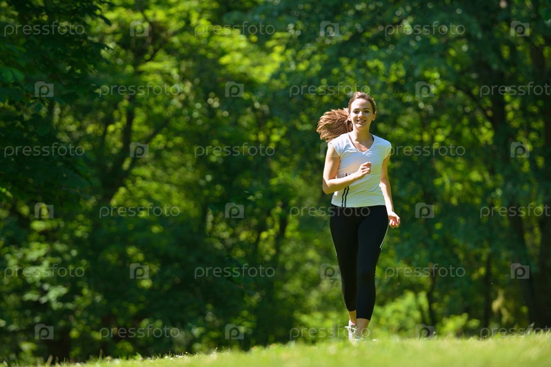 Молодая красивая женщина на утренней пробежке в парке