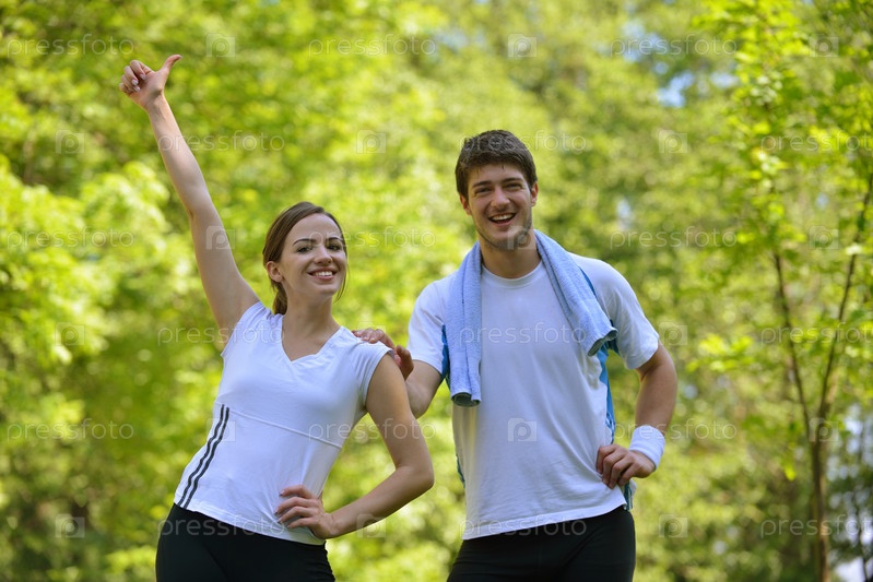 Пара делает растяжку после пробежки