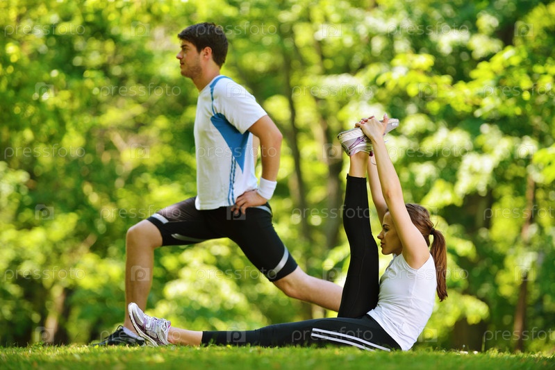 Пара делает растяжку после пробежки