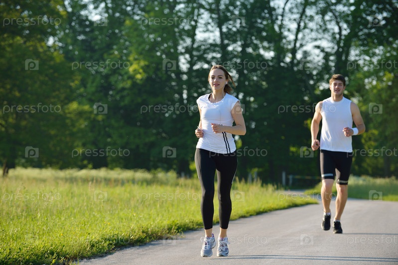 Молодая пара на утренней пробежке