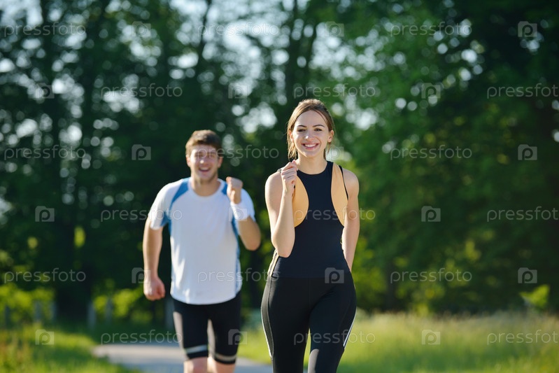 Молодая пара на утренней пробежке