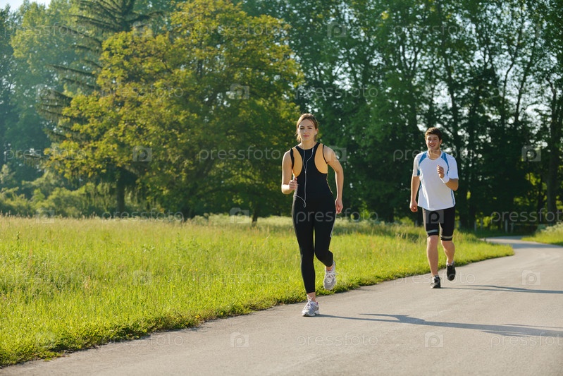 Молодая пара на утренней пробежке