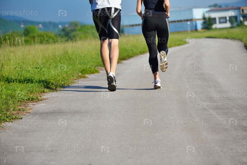 Молодая пара на утренней пробежке