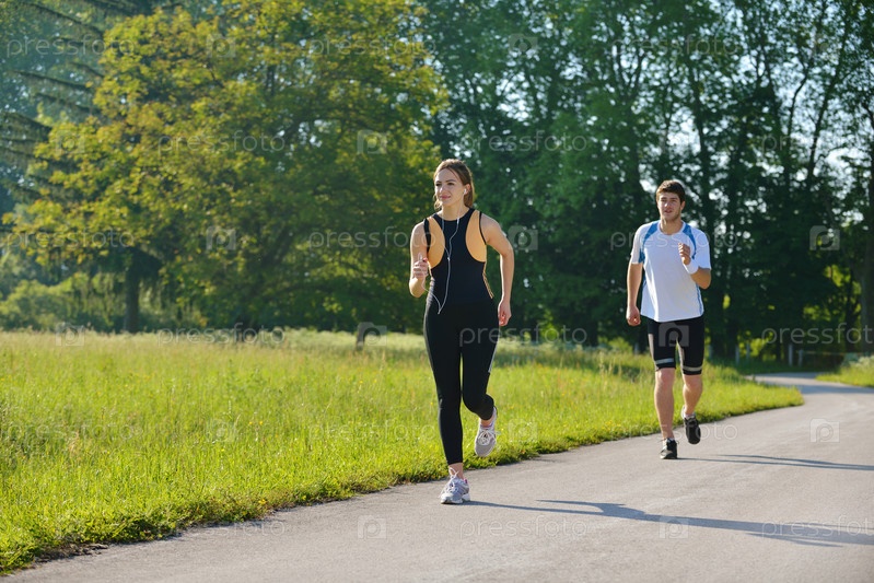Молодая пара на утренней пробежке