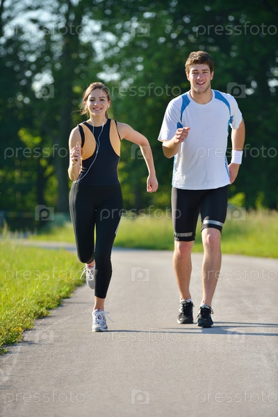 Молодая пара на утренней пробежке