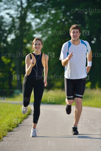 Молодая пара на утренней пробежке