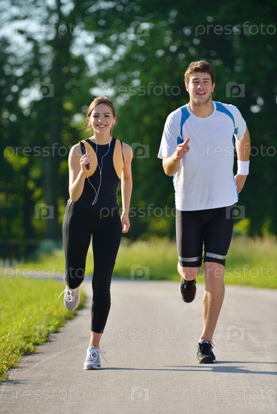 Молодая пара на утренней пробежке