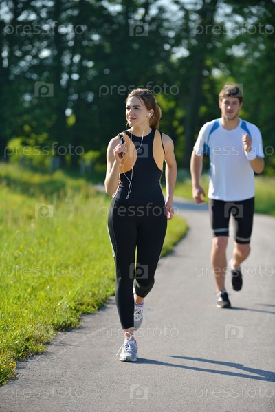 Молодая пара на утренней пробежке