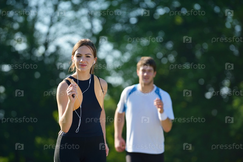 Молодая пара на утренней пробежке