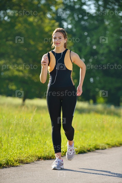 Молодая красивая женщина на утренней пробежке в парке