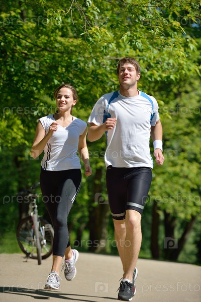 Молодая пара на утренней пробежке