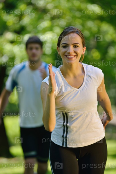 Молодая пара на утренней пробежке