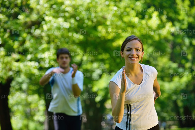 Молодая пара на утренней пробежке
