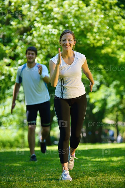 Молодая пара на утренней пробежке