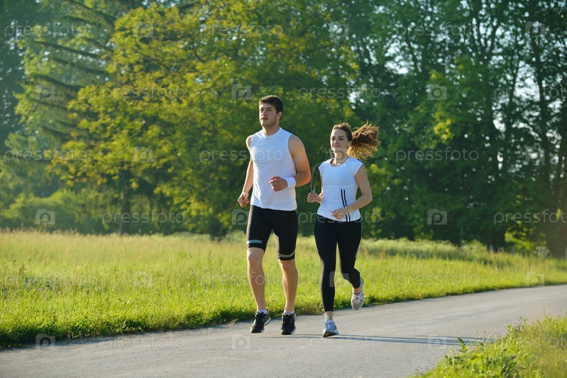Молодая пара на утренней пробежке